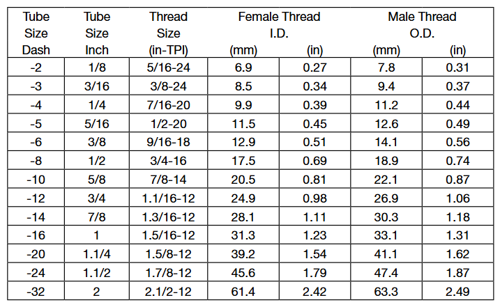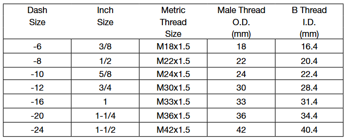 注意:在-02、-03、-04、-05、-08和-10尺寸,SAE45°擴口的螺紋同SAE 37°擴口的螺紋相同。但是密封面角度不同。請仔細測量密封角度以區分。