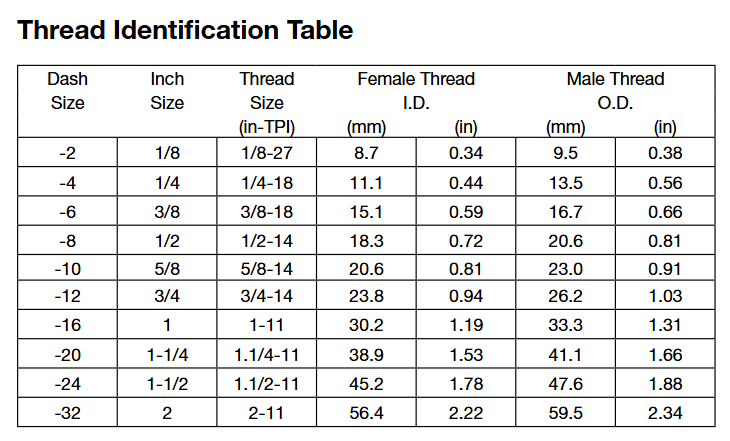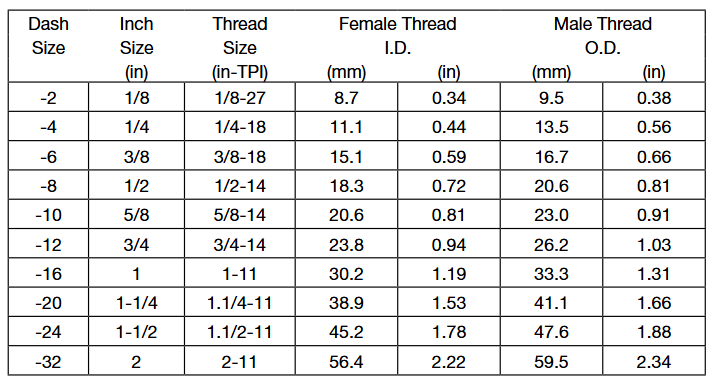 通常會把尺寸簡寫為以16為分母的分子數,如-04表示4/16或1 /4” 英寸。