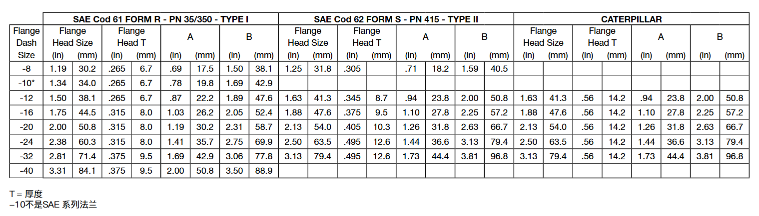 2.卡特比勒法蘭中,法蘭外徑同SAE標號62相同,但是法蘭頭更厚,