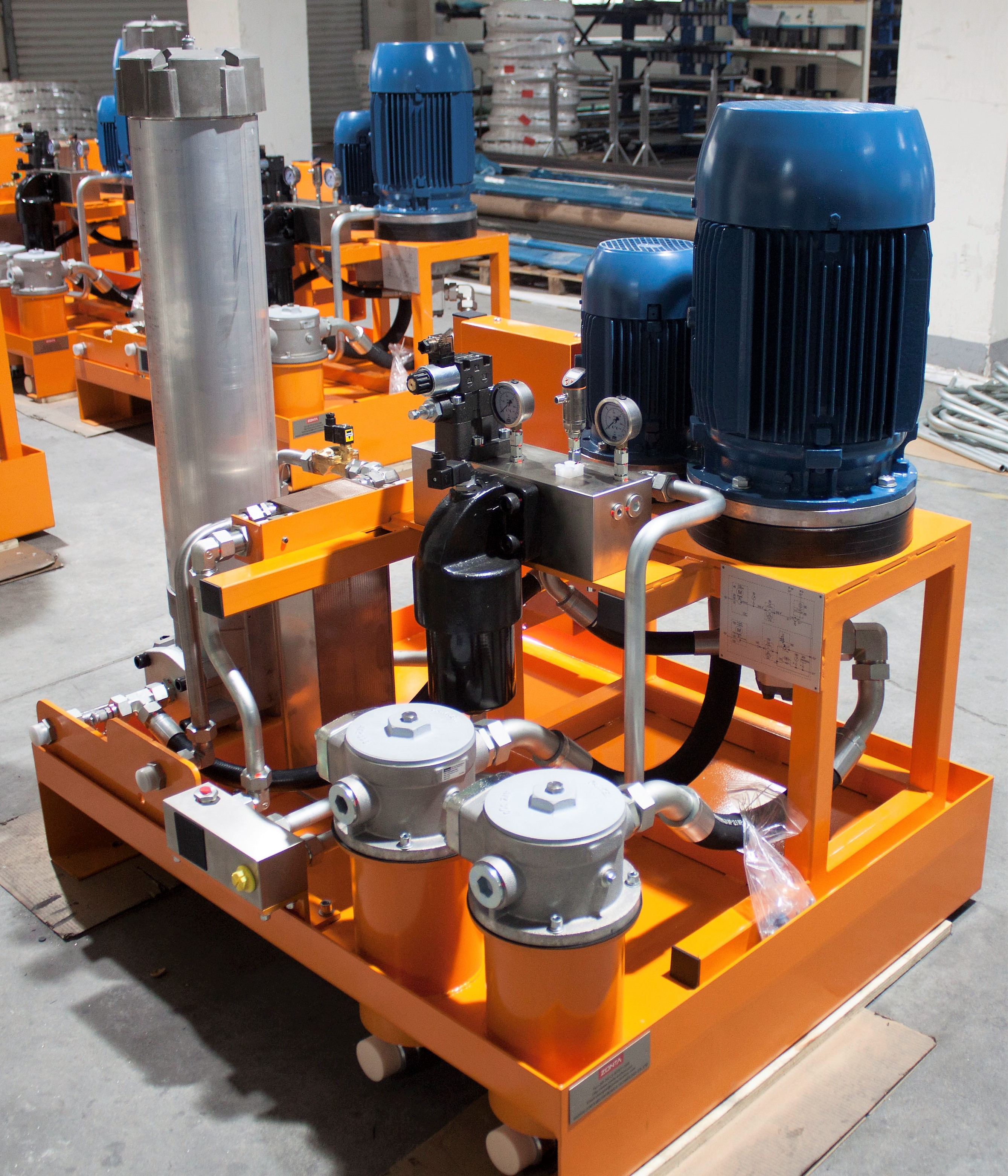 液壓站是由液壓泵、驅動用電動機、油箱、方向閥、節流閥、溢流閥等構成的液壓源裝置或包括控制閥在內的液壓裝置。按驅動裝置要求的流向、壓力和流量供油,適用于驅動裝置與液壓站分離的各種機械上,將液壓站與驅動中泰可以為您提供多種液壓解決方案與系統:裝置(油缸或馬達)用油管相連,液壓系統即可實現各種規定動作。