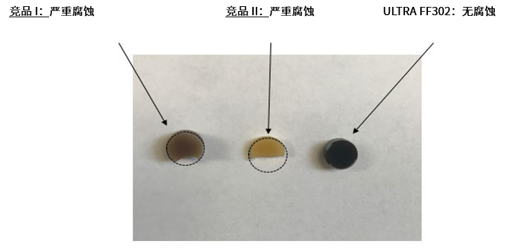 實驗室測試表明,與當今先進的彈性體材料相比,Ultra FF302在腐蝕性等離子體化學物質中的腐蝕程度更低。(下圖展示了不同耐腐蝕性能的FFKM暴露于O2等離子體后的腐蝕水平)
