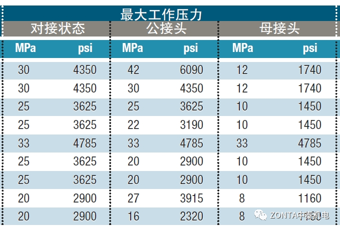 ① 有些快速接頭對接狀態和斷開狀態的最大工作壓力不同(兩種狀態承壓部位不同),選型階段必須核實斷開狀態和對接狀態的工作壓力。