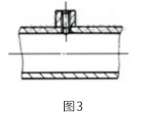 圖3所示為液壓缸缸筒,缸筒上的螺紋孔常安排在焊接工序之后加工,這樣就不可避免地要在螺紋孔出口與缸筒內(nèi)壁的交界處產(chǎn)生毛刺。為清除毛刺,必須設(shè)計(jì)制作專(zhuān)用刀具對(duì)其進(jìn)行加工,達(dá)到光滑過(guò)渡的目的。圖4為專(zhuān)用刀具的結(jié)構(gòu)。使用時(shí),先將刀桿從螺紋孔中插人,然后從側(cè)面將刀頭安裝在刀桿上,旋轉(zhuǎn)刀桿即可將毛刺除掉并加工出光滑完整的表面。